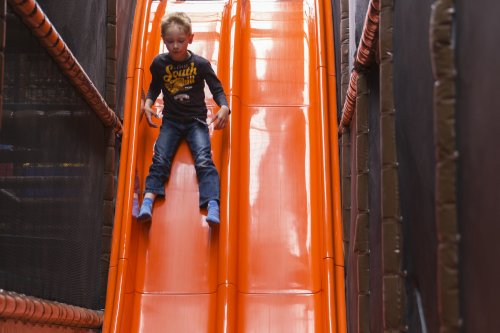 Binnenspeeltuin met binnenterras waar je je de hele dag kunt vermaken met slecht weer. De nieuwste elementen zijn bijvoorbeeld een Augmented Reality Trampoline waar je heel intensief moet springen om punten te halen.