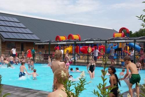 Waterspeeltuin. Er is een heel leuk zwembad met glijbaan, een waterluchtkussen en een water &zandspeeltoestel waar kinderen uren druk kunnen zijn met spelen.